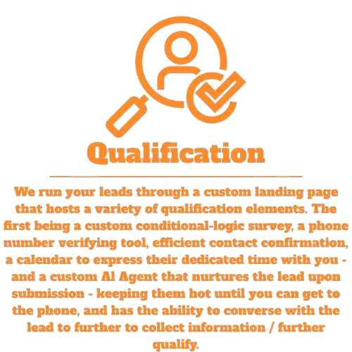 Prospective leads meet health, timing and financial qualifications. Other qualifications that you request can be added to our qualification funnel. These are confirmed by our in house lead vetter.